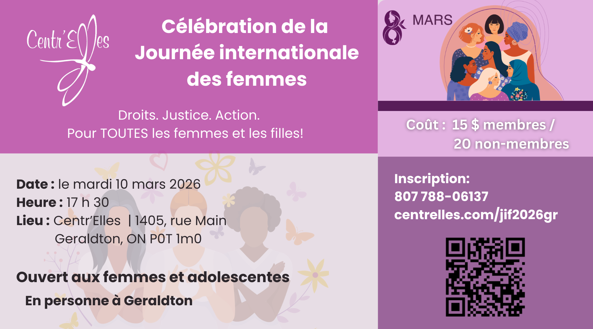 À l'occasion de la Journée internationale des femmes, qui se tiendra le 10 mars 2026, Centr’Elles est ravie de vous inviter à célébrer cette journée.